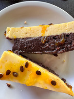 Uma variedade de pães, bolos, biscoitos, frutas, sucos naturais... Há também produtos de uma linha mais fit, como suco verde, bolos com castanhas, pão integral, gelatina sem açúcar.